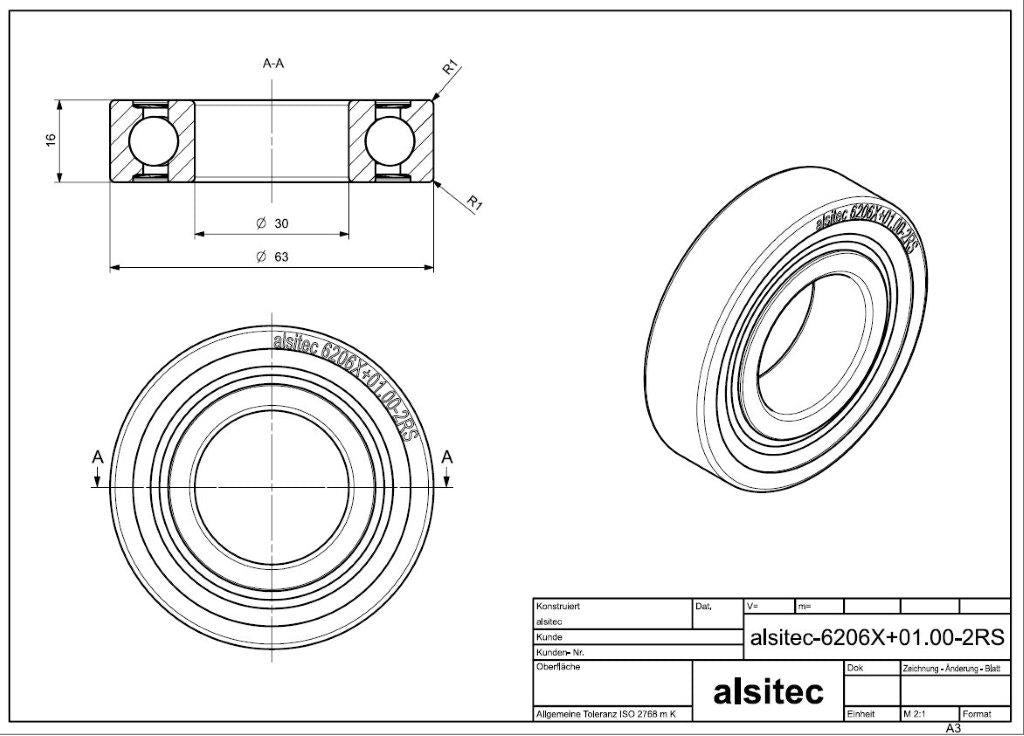 Übermaß Kugellager 6206X+01.00-2RS